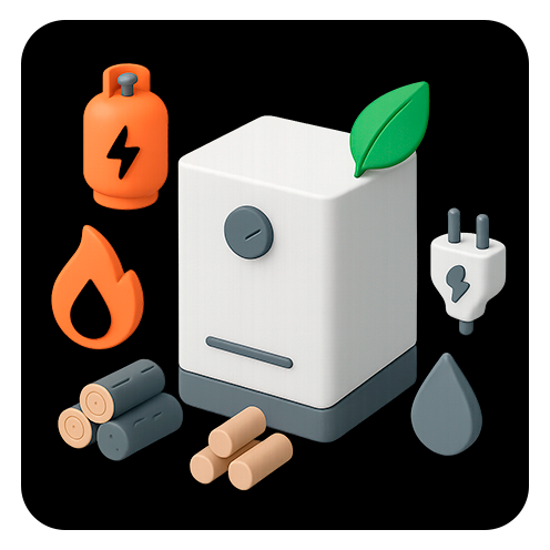 Вам помогут подобрать тип котла в зависимости от того, какой вид топлива наиболее приемлем: природный газ, электричество, уголь, дрова, пеллеты или дизель. Более того, есть вариант установки сразу нескольких разных котлов, которые будут сменять друг друга в разное время суток или служить для подстраховки.