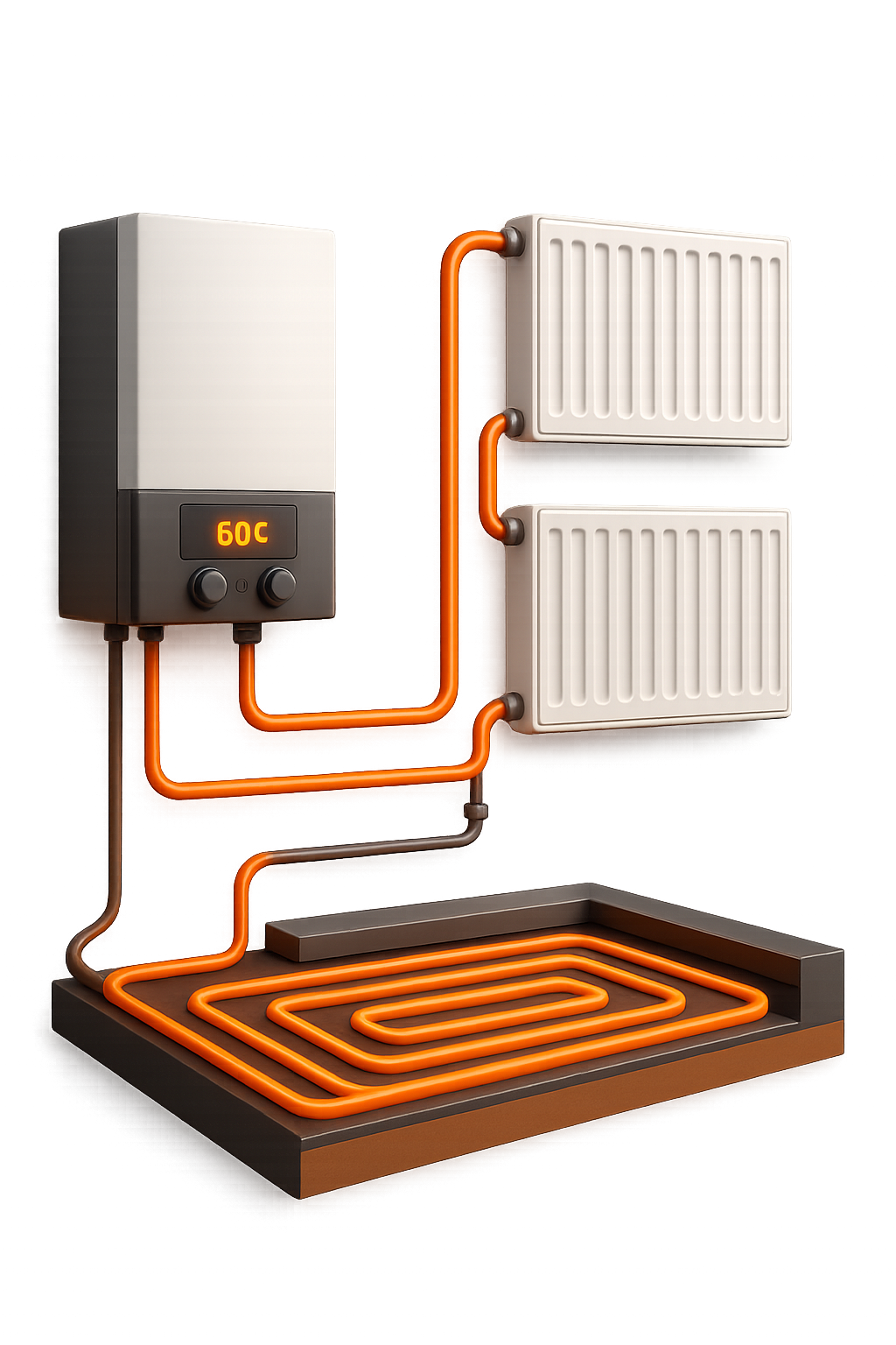 Вам не придется заботиться о выборе комплектующих — мы доставим все необходимое: радиаторы, трубы, краны. Используем только проверенные материалы ведущих производителей: Rehau, Valtec, Buderus, Baxi. В качестве можете не сомневаться!