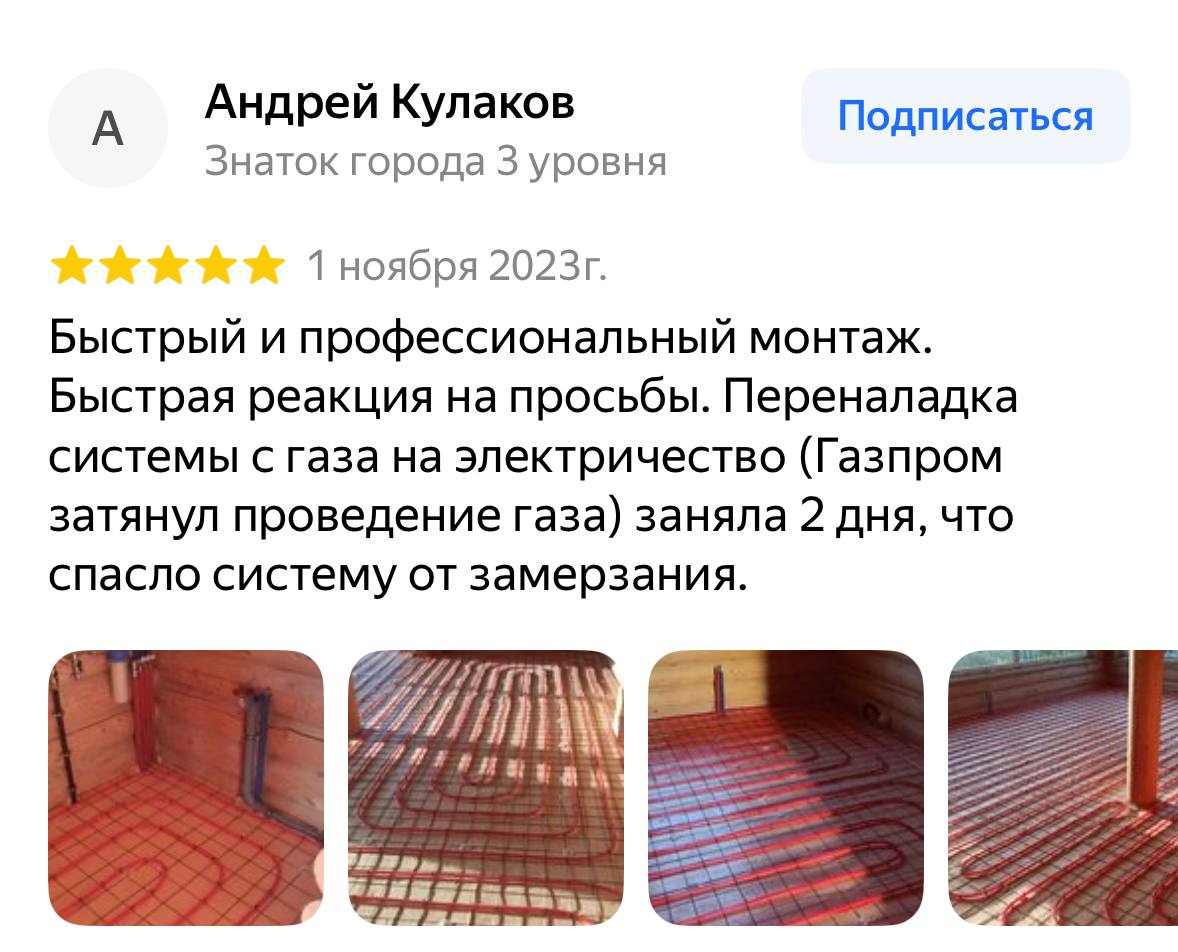 Профессиональные монтажники установят и настроят систему так, чтобы ваши зимние вечера были теплыми и уютными.
